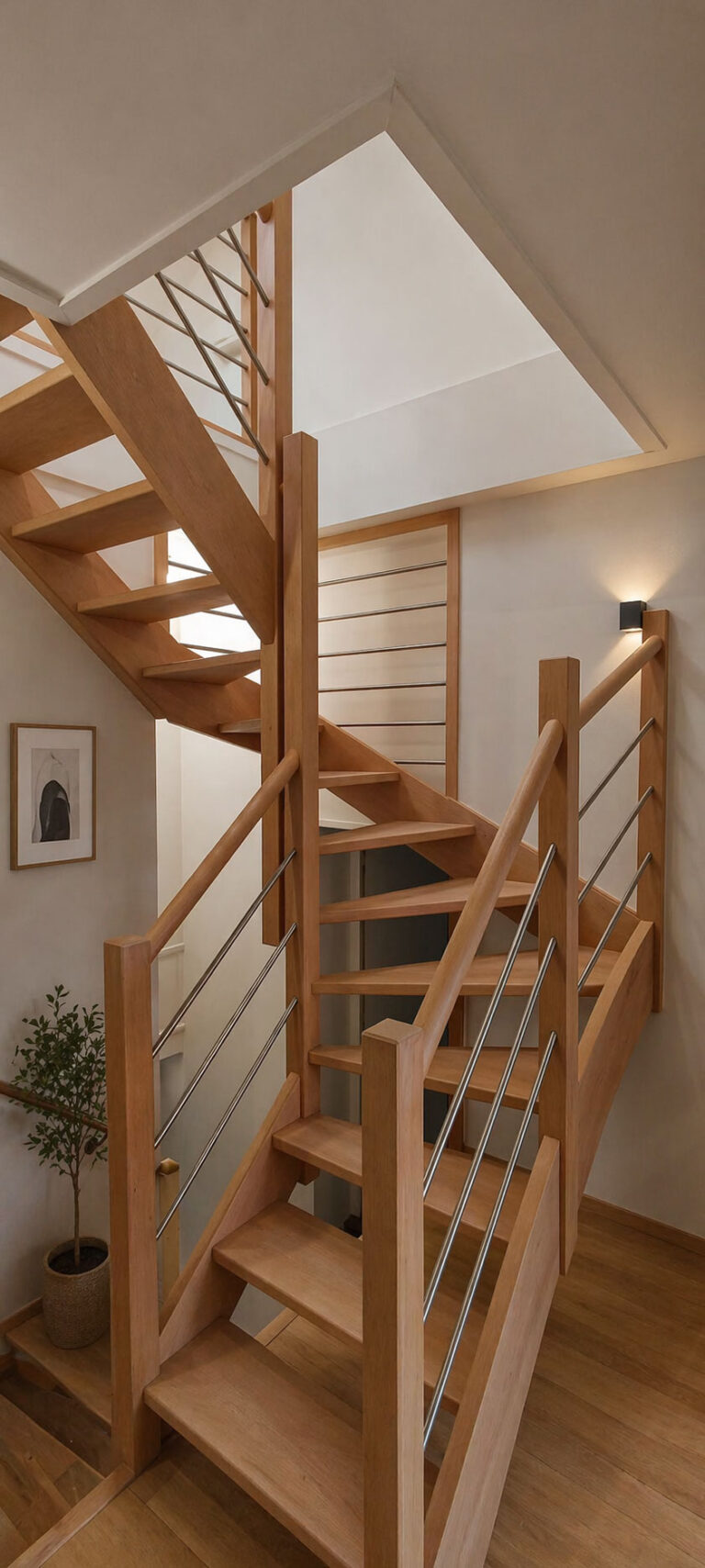 Nous concevons et installons l’escalier qui s’intègre parfaitement à votre intérieur : droit, quart tournant, colimaçon, en bois massif ou métal. Gain de place et esthétique sont nos priorités.